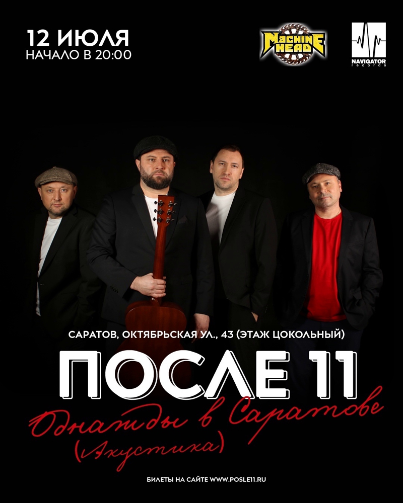12 июля 2025 года в баре «Machine Head» города Саратова состоится концерт группы «После 11».