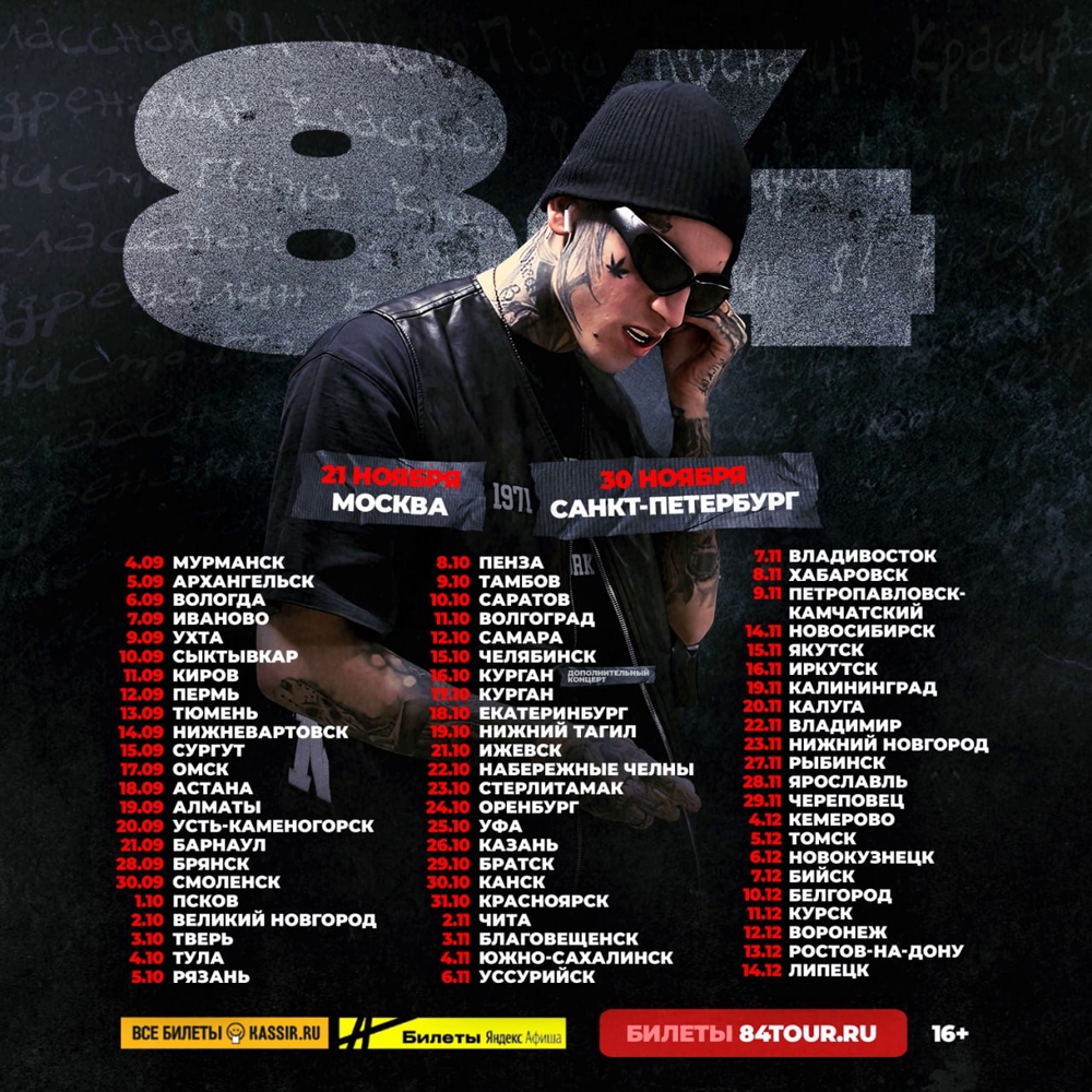 10 октября 2025 года в клубе «Onyx» города Саратова состоится концерт исполнителя «84».